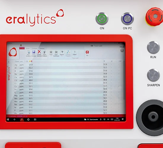 ERAOIL is the first fully stand-alone rotating disc electrode optical emission spectrometer (RDE-OES) designed for fast and accurate elemental analysis of wear metals, additives, and contaminants in oils, fuels, coolants, and process fluids. With no need for sample preparation, plasma gas, or solvents, ERAOIL delivers precise results in under 30 seconds, analyzing up to 32 elements simultaneously.