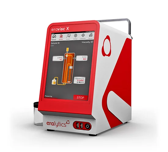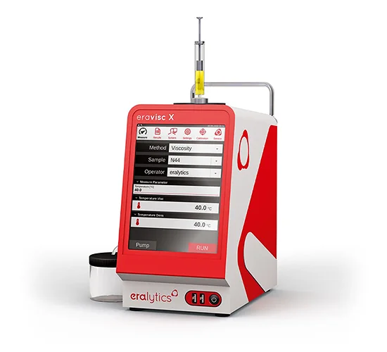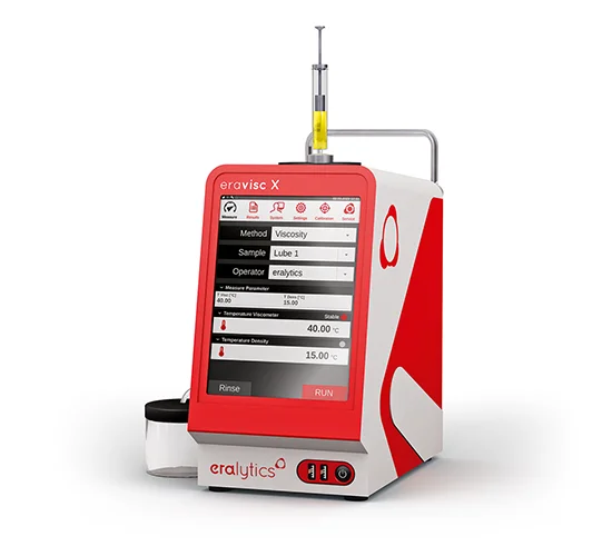 ERAVISC X is the world’s most compact and rugged high-precision analyzer for simultaneous kinematic viscosity and density measurements. Built for lab and field use, it meets ASTM D445, D7042, D4052, and ISO 12185 standards. Its revolutionary viscosity cell and patented x-oscillating metal U-tube allow accurate, independent measurement of viscosity and density — even at different temperatures. With robust construction and full automation, ERAVISC X is ideal for rapid condition monitoring and quality control.